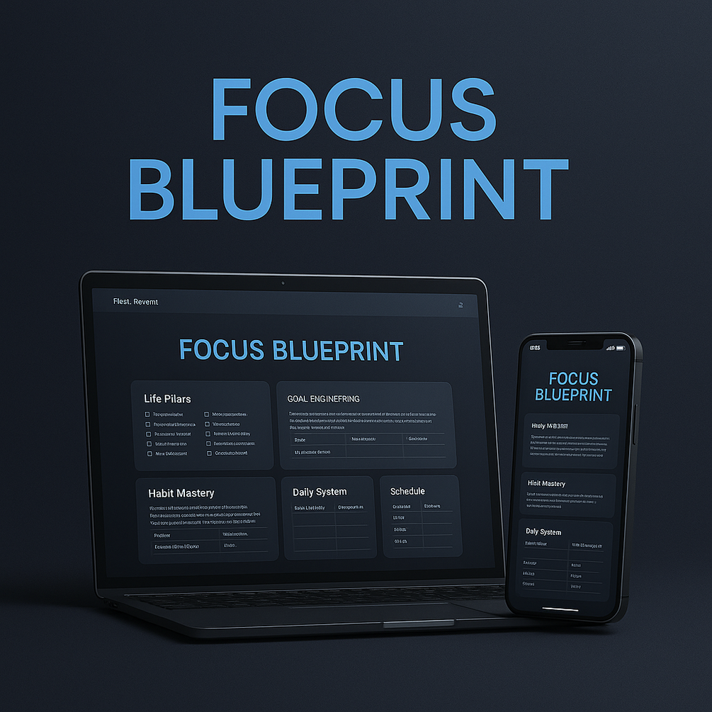Focus Blueprint™ is a complete personal operating system combining guided life workbooks, modular execution tools, and visual dashboards to help you gain clarity, choose the right priorities, and execute consistently.
