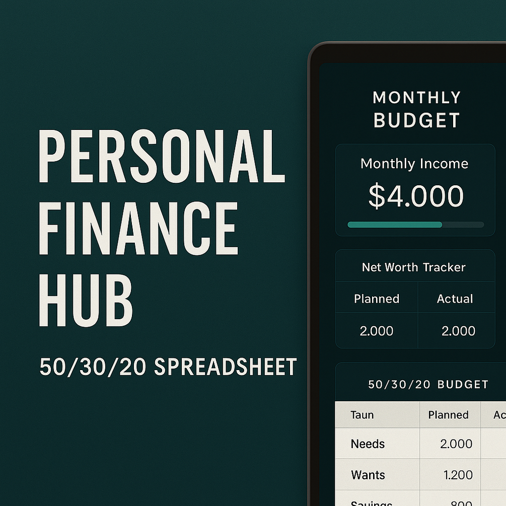 Wizdom Personal Finance Hub — 50/30/20 Budgeting System | Dark & Light Themes | Excel + Google Sheets